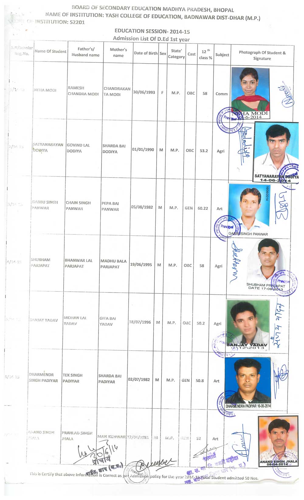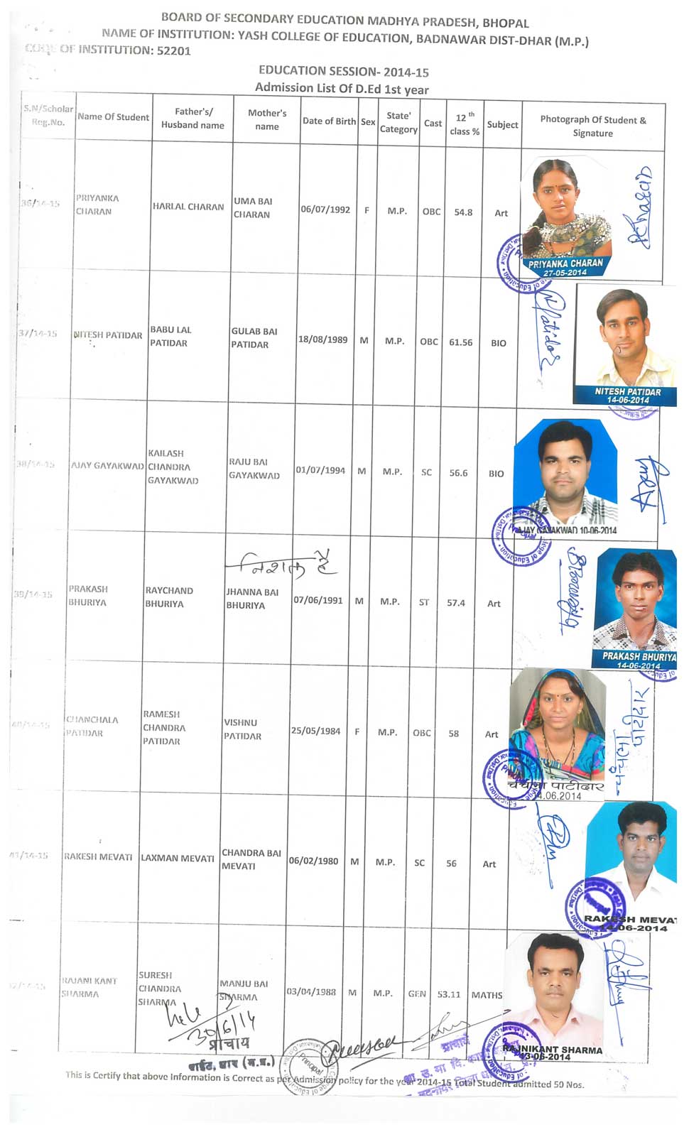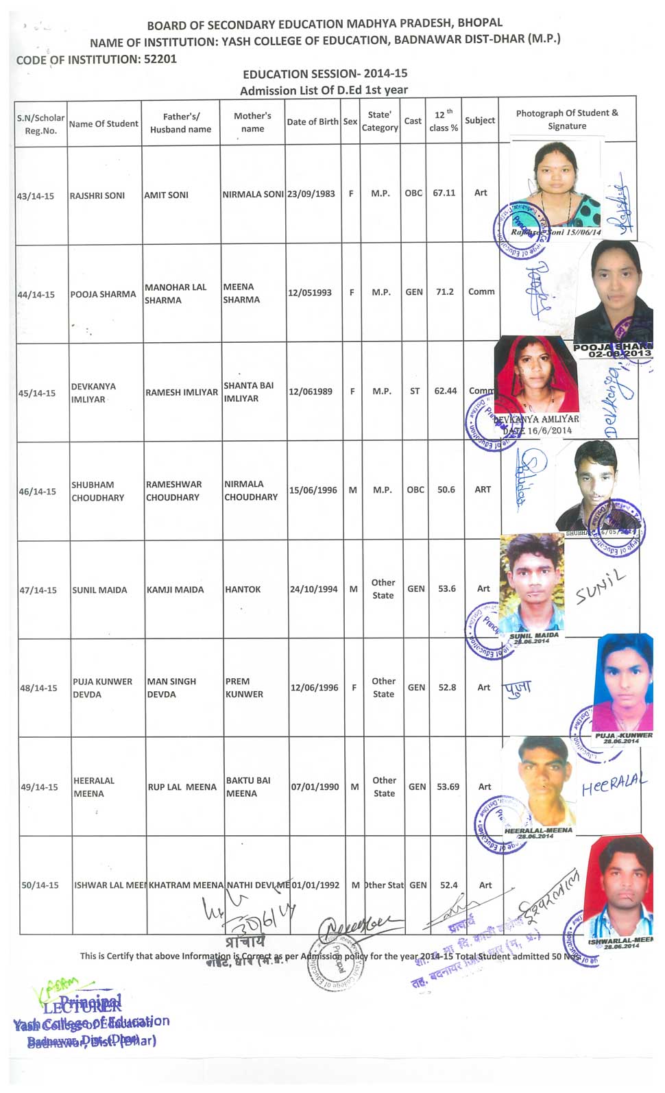 M.Ed., B.Ed, D.Ed, B.Sc.(C.S.), B.Com (C.A.), .Yash College of Education Petlawad Road, Badnawar Dist. Dhar (M.P.)