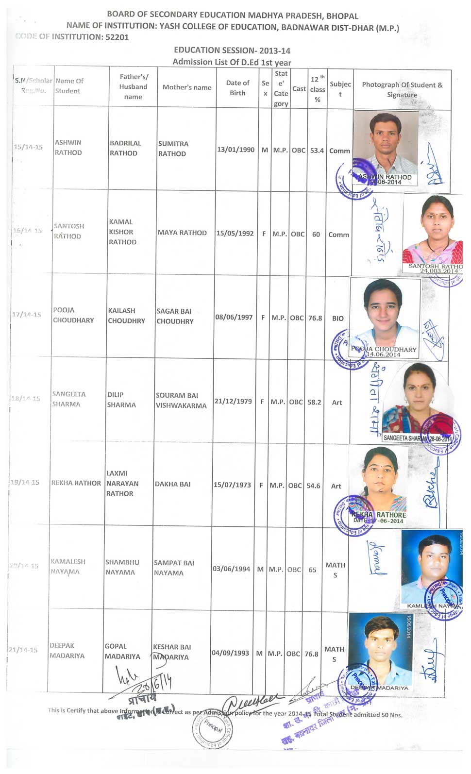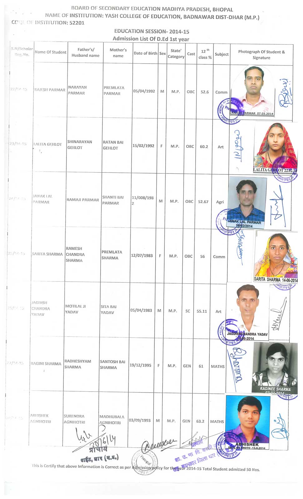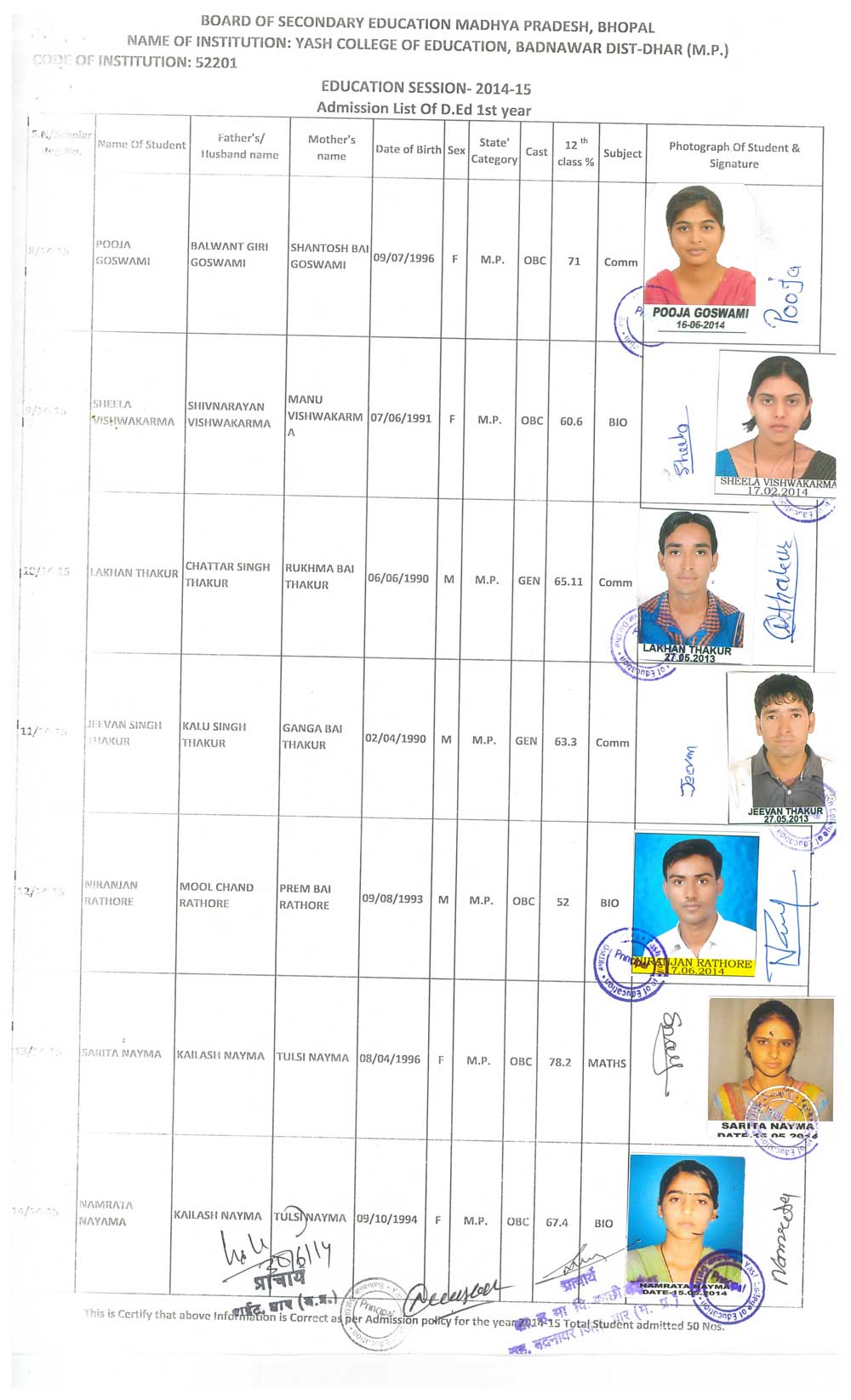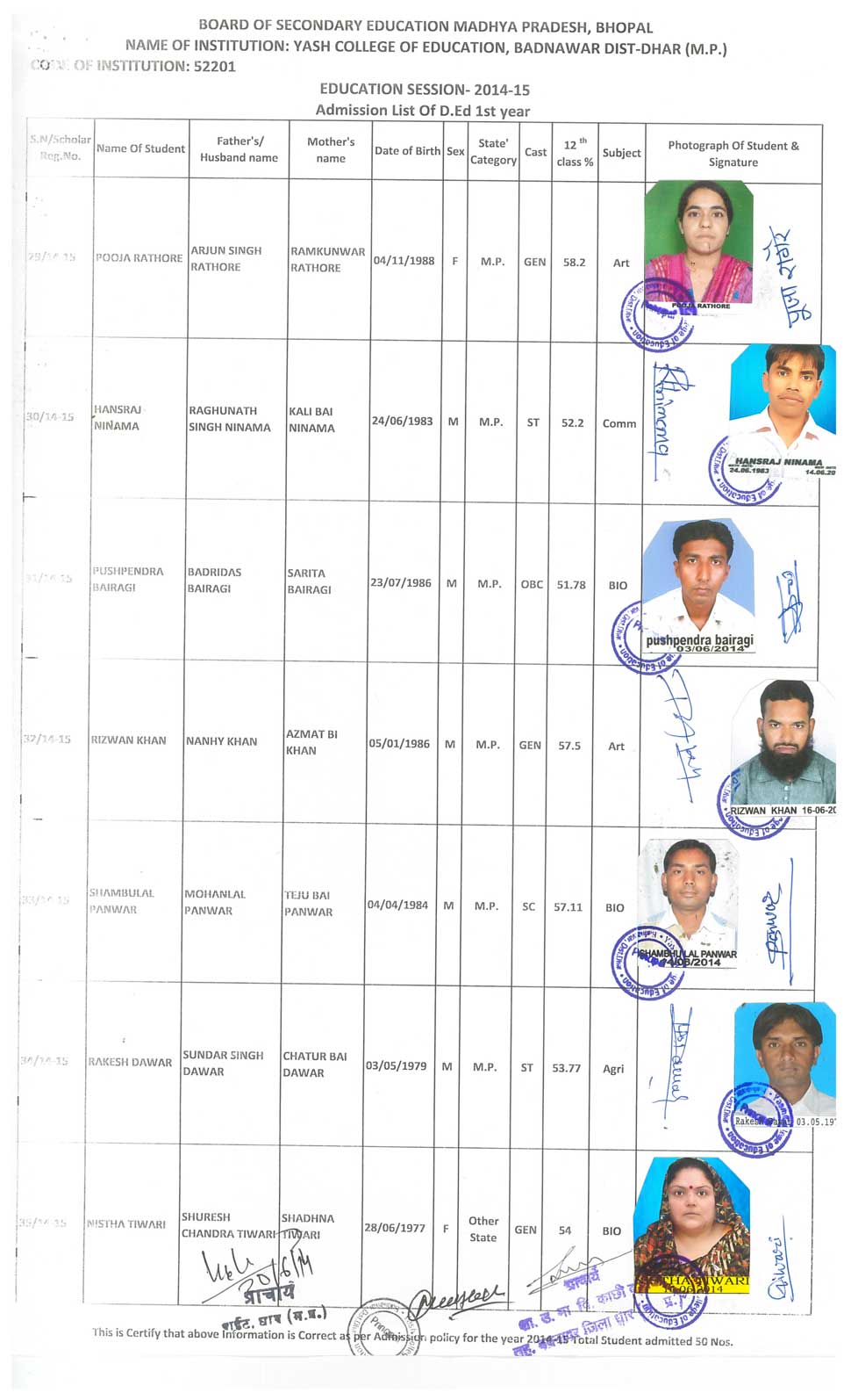 M.Ed., B.Ed, D.Ed, B.Sc.(C.S.), B.Com (C.A.), .Yash College of Education Petlawad Road, Badnawar Dist. Dhar (M.P.)